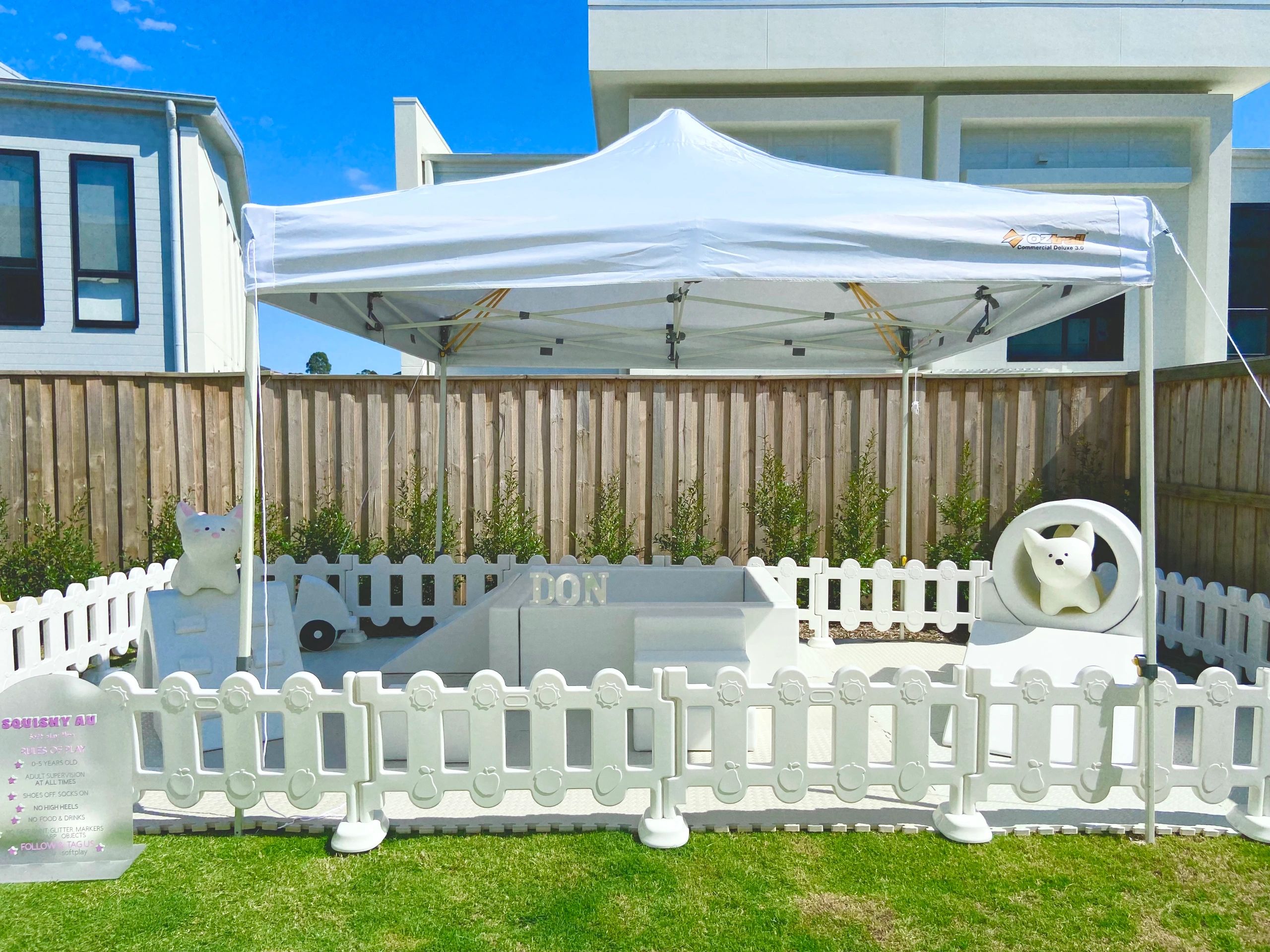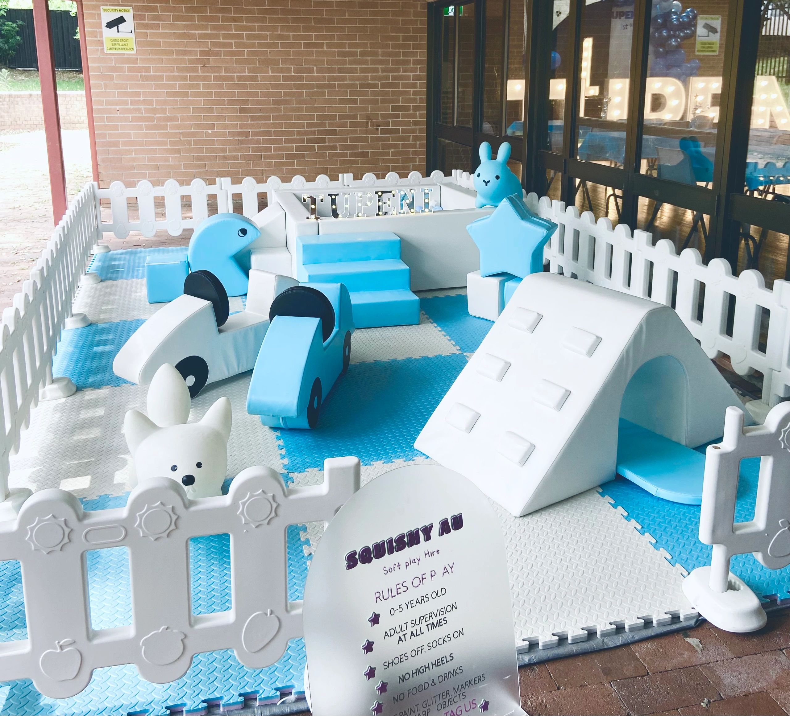 BALL PIT, 2 SOFT PLAY EQUIPMENT, SOFT CAR, SOFT STAR, SOFT CUBES, ANIMAL HOPPERS, PACMAN, FENCE AND MATS