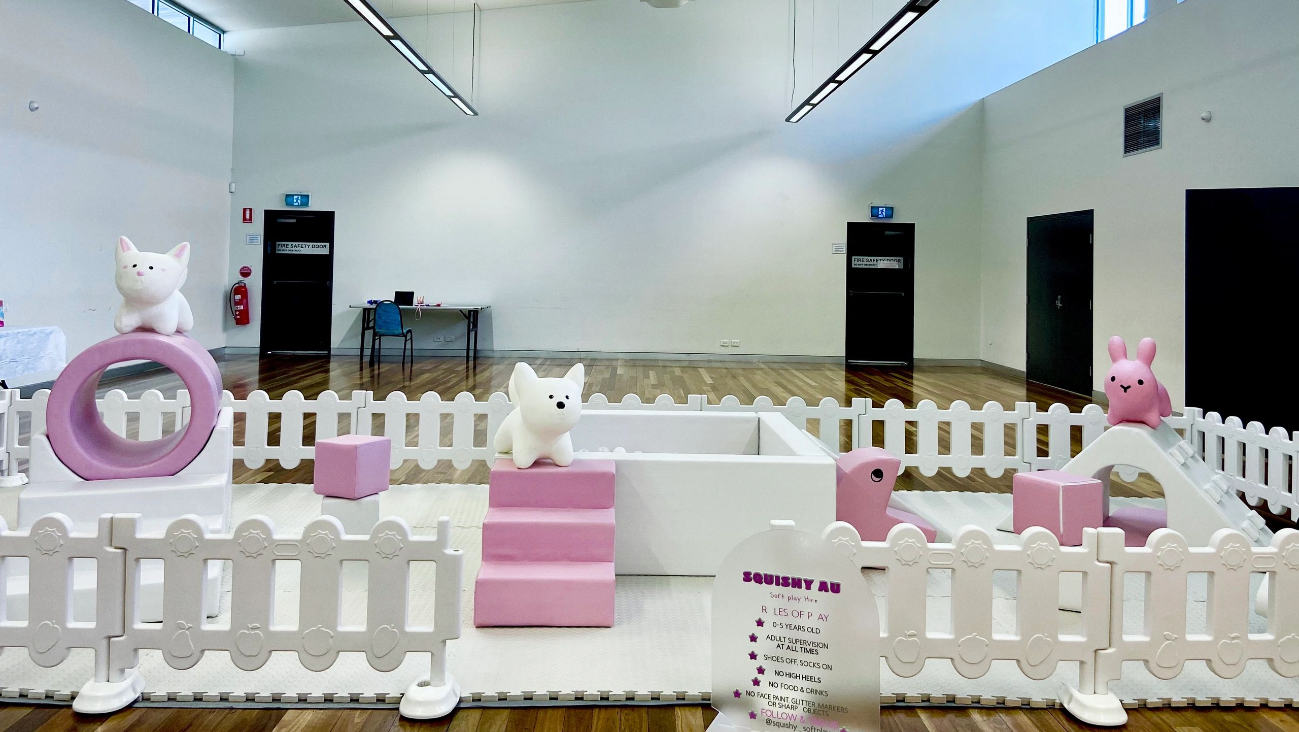 BALL PIT, 2 SOFT PLAY EQUIPMENT, SOFT CAR, SOFT STAR, SOFT CUBES, ANIMAL HOPPERS, FENCE AND MATS